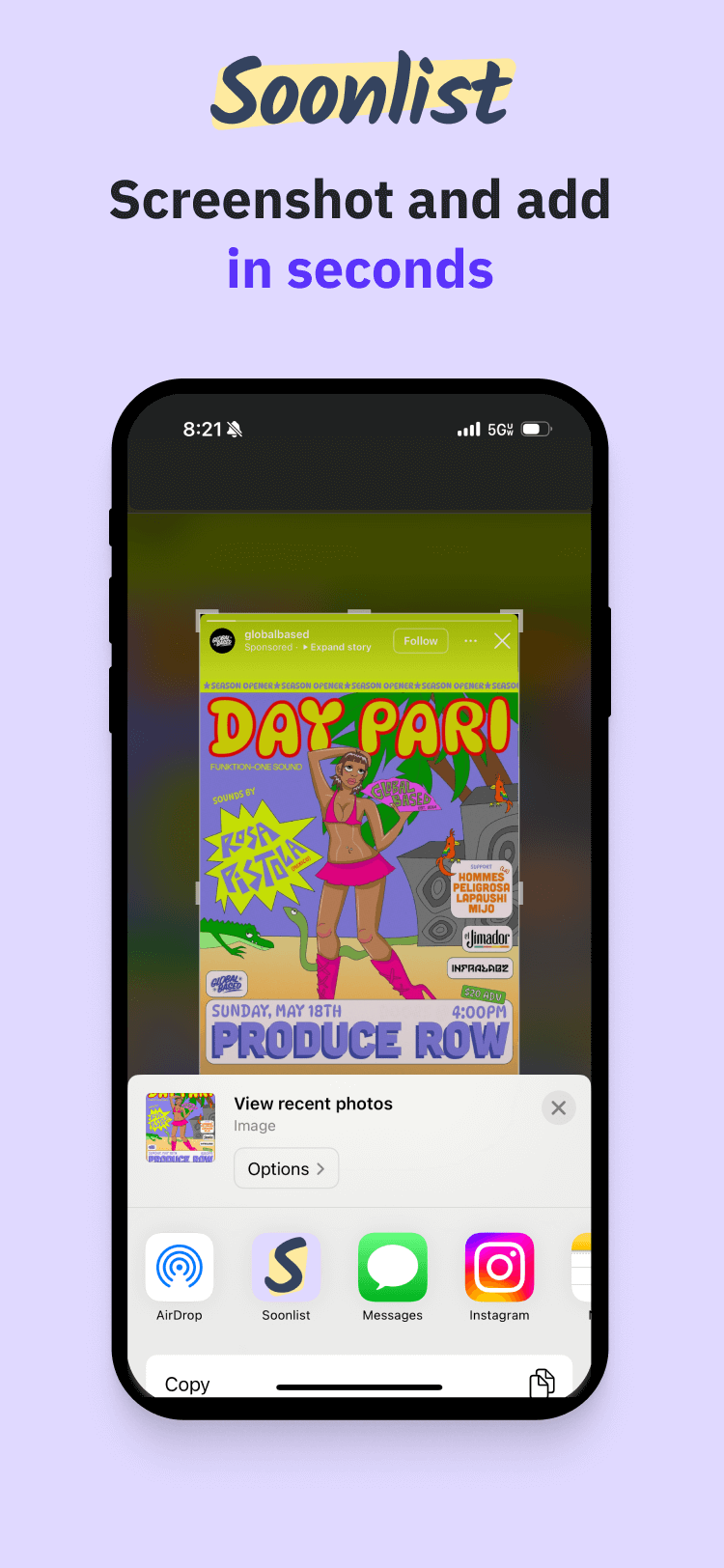 The app works in three simple steps: Capture an event from any source: social media, flyers, or text messages. Soonlist organizes these into listings automatically, creating a personalized feed of possibilities. Receive notifications on saved events and discover other people's events, so you can jump into real experiences.